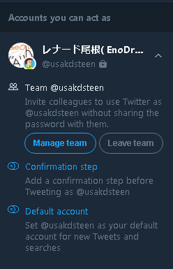 これはアレですよ、こっちのアカウントもチームにしてレナドーン君招待すれば、独り言はこっちにツイートするとかいうのが可能になる