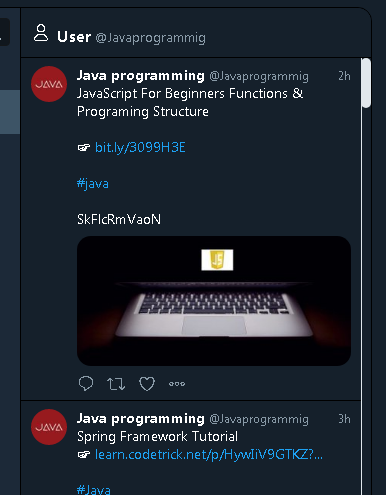 れなどーんくん、javaprogrammingって謎のアカウントからふぉろーされたっぽいんだけど、そのアカウントのツイート内容が…javascriptって…