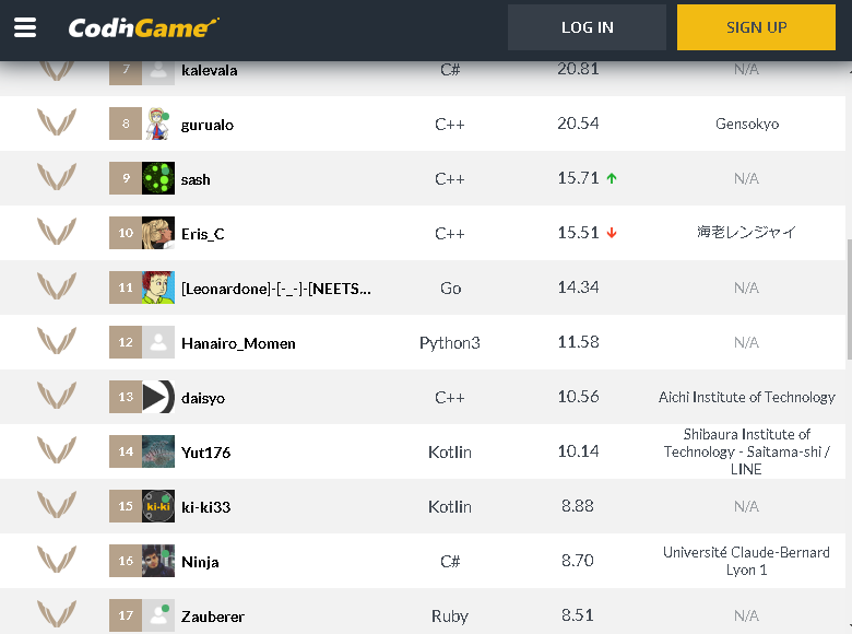@CodinGame 明日までに1桁くらいに下がって総